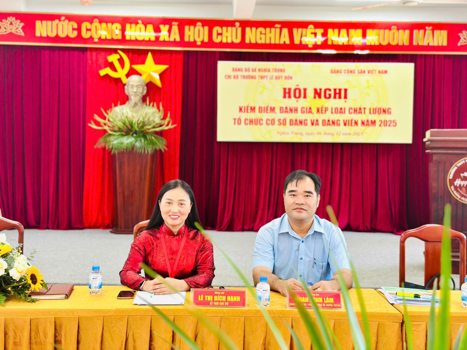 Phát biểu chỉ đạo tại cuộc họp, đồng chí Phan Minh Lâm, UVBTV Đảng ủy – PCT UBND xã Nghĩa Trung đánh giá cao sự chỉnh chu trong công tác chuẩn bị cho buổi kiểm điểm, đánh giá và tinh thần làm việc nghiêm túc, thẳng thắn góp ý cho tập thể, cá nhân các đồng chí trong Chi bộ cũng như những kết quả mà Chi bộ và nhà trường đã đạt được trong năm 2025. Đồng chí mong muốn Chi bộ sẽ tiếp tục sát sao, chỉ đạo các hoạt động của nhà trường để phát huy các thành tích đã đạt được và khắc phục các hạn chế, đưa trường THPT Lê Quý Đôn ngày càng phát triển.