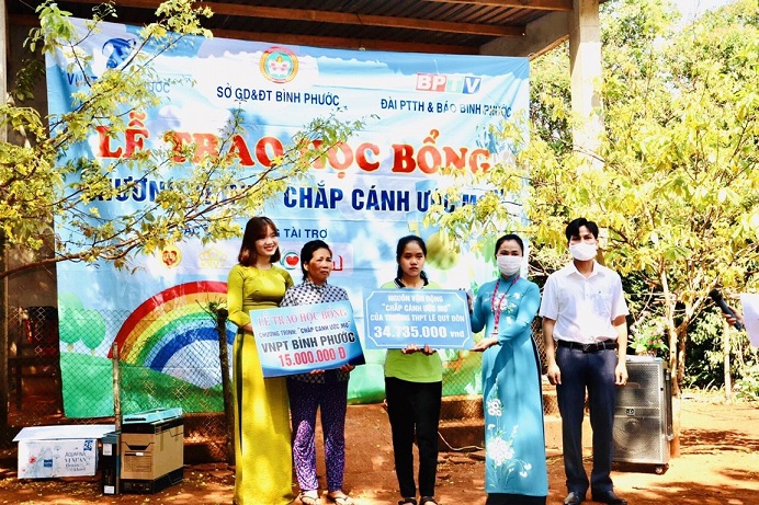 Sáng ngày 22 tháng 2 năm 2021, Sở Giáo dục và Đào tạo, Đài Phát thanh - Truyền hình và Báo Bình Phước, VNPT Bình Phước đồng tổ chức thành công buổi trao học bổng “Chắp cánh ước mơ” kỳ 67 cho em Nguyễn Thị Tuyết Nhung - học sinh lớp 12A1, Trường THPT Lê Quý Đôn. Buổi trao học bổng đã diễn ra trong bầu không khí ấm áp, tràn đầy tình yêu thương tại nơi ở của em Nguyễn Thị Tuyết Nhung.