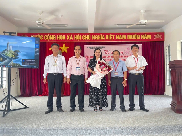 Thay mặt cho nam công nhà trường, thầy giáo Nguyễn Đức Tính và thầy Phạm Văn Phú – Phó hiệu trưởng đã gửi tặng đến các cô giáo, cán bộ, nhân viên nữ bó hoa tươi thắm thay cho lời chúc mừng, lời tri ân sâu sắc đến các phái đẹp của nhà trường.