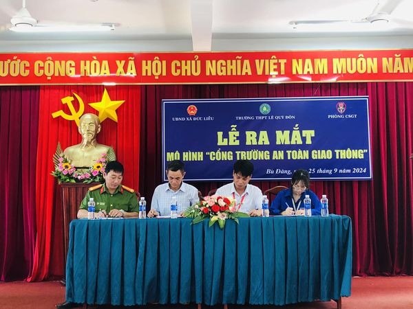 Cũng tại buổi lễ, Công an xã Đức Liễu cùng Đại diện Ban giám hiệu, Đại điện Ban cha mẹ học sinh, đại diện học sinh trường THPT Lê Quý Đôn đã kí cam kết về các nội dung bảo đảm trật tự, an toàn giao thông trong thời gian tới, quyết tâm không để xảy ra các trường hợp vi phạm Luật giao thông đường bộ và tai nạn giao thông liên quan đến học sinh của trường THPT Lê Quý Đôn.
