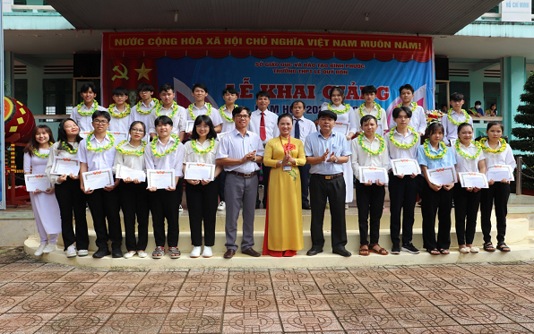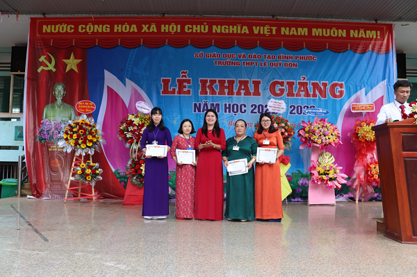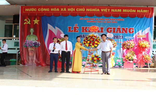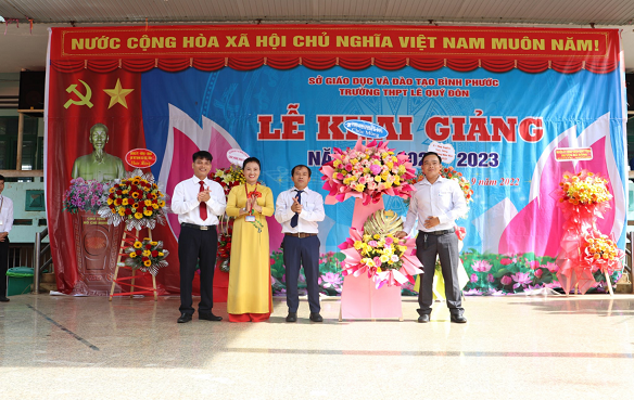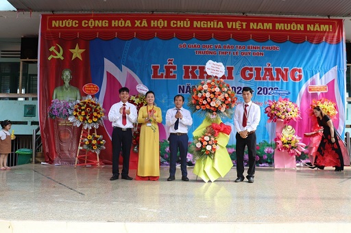 Cũng trong buổi lễ long trọng này, đại diện của lãnh đạo huyện Bù Đăng, đại diện UBND xã Nghĩa Trung, xã Nghĩa Bình, xã Đức Liễu, Hội cha mẹ học sinh, các doanh nghiệp đã có những lẵng hoa tươi thắm cùng những phần quà vô cùng ý nghĩa gửi đến nhà trường với niềm tin, niềm mong mỏi về sự thành công của con em trên con đường học vấn, sự phát triển đi lên của trường THPT Lê Quý Đôn.