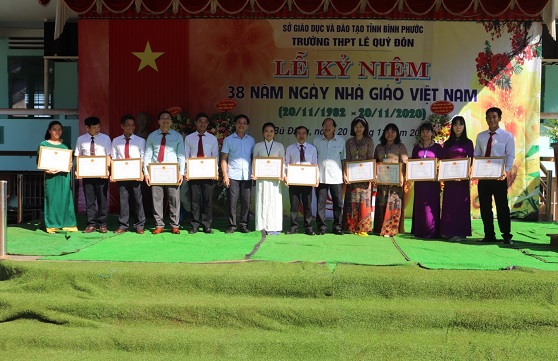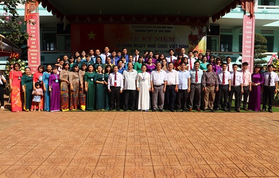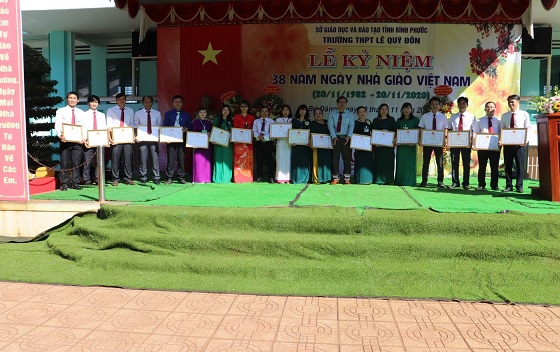 Hòa chung không khí vui tươi phấn khởi của cả nước, sáng ngày 20/11/2020, trường THPT Lê Quý Đôn đã long trọng tổ chức lễ kỷ niệm 38 năm ngày Nhà giáo Việt Nam. Đến tham dự buổi lễ có đại diện lãnh đạo của các xã Đức Liễu, Nghĩa Trung, Nông trường cao su Nghĩa Trung, Ban đại diện cha mẹ học sinh cùng Ban giám hiệu nhà trường, thầy cô giáo và hơn 1.000 học sinh của Nhà trường.
