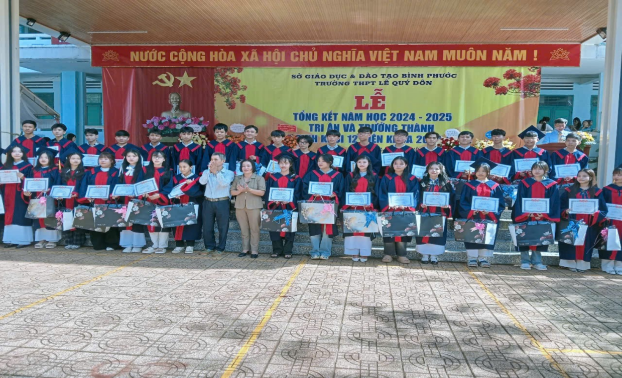 Hôm nay ngày 27/5/2025, được sự đồng ý của Sở GD –ĐT Bình Phước, sự chỉ đạo của Chi bộ, Ban Giám hiệu và sự thống nhất cao trong HĐSP, Trường THPT Lê Quý Đôn long trọng tổ chức buổi lễ Tổng kết năm học 2024-2025.