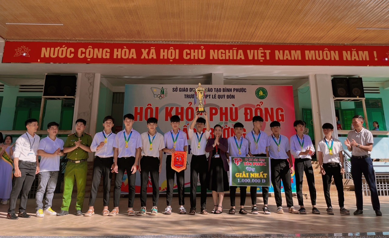 Sau gần một tháng thi đấu hào hứng, sôi nổi, HKPĐ trường THPT Lê Quý Đôn đã hoàn thành nội dung thi đấu môn cuối cùng trong số 5 môn thi đấu vào chiều ngày 3/11/2023. Để chuẩn bị cho giải đấu, Ban tổ chức đã chuẩn bị chu đáo các điều kiện về cơ sở vật chất, phương án thực hiện để giải đấu diễn ra an toàn, hiệu quả và thành công tốt đẹp. Nhằm kịp thời biểu dương, khen thưởng các vận động viên có thành tích xuất sắc trong HKPĐ cấp trường, Ban tổ chức đã long trọng tổ chức chương trình tổng kết và trao thưởng cho các tập thể và cá nhân đạt thành tích xuất sắc trong Hội khỏe Phù Đổng cấp trường năm nay.
