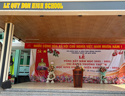 Được sự đồng ý của Sở GD –ĐT Bình Phước, sự chỉ đạo của Chi bộ, Ban Giám hiệu và sự thống nhất cao trong HĐSP, thực hiện kế hoạch số 114/KH - LQĐ ngày 10/5/2023, hôm nay ngày 20/5/2023, Trường THPT Lê Quý Đôn long trọng tổ chức buổi lễ Tổng kết năm học 2022-2023, tri ân cha mẹ, thầy cô và trưởng thành cho HS khối 12.