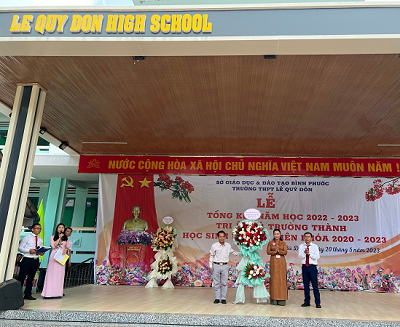 Buổi lễ diễn ra trong không khí vui tươi, phấn khởi bởi những tiết mục văn nghệ đặc sắc đến từ các Chi đoàn - Lớp và bởi những thành công rực rỡ mà thầy và trò đã gặt hái được trong thời gian qua. Đến tham dự buổi lễ có đại diện chính quyền địa phương các xã Đức Liễu, Nghĩa Bình, Nghiã Trung, Ban đại diện CMHS, Thầy cô giáo và hơn 1000 HS. Thay mặt Nhà trường, thầy Nguyễn Đức Tính - phó bí thư Chi bộ, phó hiệu trưởng nhà trường đã lên báo cáo tổng kết năm học, nêu lên những thành tích đã đạt được đồng thời chỉ ra những hạn chế, khó khăn cần khắc phục trong năm học tới. Phải nói rằng, năm học 2022 – 2023 là năm học mà thầy và trò trường THPT Lê Quý Đôn đã gạt hái được những thành công đáng khích lệ. cụ thể : Trong kỳ thi học sinh giỏi cấp tỉnh có 15 học sinh đạt giải, trong đó có 01 giải Nhì, 08 học sinh đạt giải Ba và 05 học sinh đạt giải Khuyến khích (So với năm học trước tăng 02 giải). Về cuộc thi sáng tạo khoa học kỹ thuật cấp tỉnh đạt 01 giải Nhì được đề cử dự thi cấp Quốc gia. Về hoạt động giáo dục thể chất, trong hội thao quốc phòng cấp tỉnh đạt giải Ba toàn đoàn, trong đó có 09 giải cá nhân (02 giải nhất, 04 giải Nhì, 03 giải Ba). Về Hội khỏe Phù Đổng đạt 7 huy chương trong đó có 01 huy chương vàng, 01 huy chương bạc và 05 huy chương đồng; Cấp Quốc gia có 01 giải khuyến khích môn ném lựu đạn. Về xếp loại học lực và hạnh kiểm, năm học 2022 -2023 đạt kết quả khả quan, Cụ thể, năm học này về học lực giỏi khối 10 có 56 em, Khối 11 có 41 em và khối 12 có 39 em. Về hạnh kiểm, hầu hết xếp loại Tốt, chỉ có 03 em xếp trung bình và 01 em xếp loại yếu . Điều đáng phấn khởi nhất là năm nay có 10 GV đạt GVG cấp Tỉnh, 33 sáng kiến được Sở GD-ĐT công nhận phạm vi ảnh hưởng nhân rộng. Cuộc thi viết về chủ đề “ Cuộc sống quanh ta” năm 2022. Chi bộ đạt 02 giải (giải nhất thuộc về cô Lê Thị Bích Hạnh; giải ba thuộc về thầy Nguyễn Văn Hè) theo báo cáo số 89 - BC/BTGH huyện Bù Đăng, ngày 29/12/2022. Đặc biệt hơn nữa trong dịp Lễ Kỷ niệm 40 năm Ngày Nhà giáo Việt Nam (20/11/1982-20/11/2022) và tuyên dương nhà giáo tiêu biểu tỉnh Bình Phước, Nhà trường đã có 01 Đồng Chí: Lê Thị Bích Hạnh - Hiệu trưởng trường THPTLê Quý Đôn được UBND tỉnh Bình Phước tặng Bằng khen theo Quyết định số 2095/QĐ-UBND ngày 09/11/2022. Cùng với đó, Nhà trường vinh dự được đón nhận quyết định trường chuẩn Quốc gia mức độ 01 của UBND tỉnh Bình Phước và Cờ thi đua của Thủ tướng Chính phủ. Qua kết quả xếp loại học lực, hạnh kiểm và những thành tích đã đạt được, thấy rằng năm học này Nhà trường có sự tiến bộ trên mọi lĩnh vực xứng đáng được ghi nhận và biểu dương. Phong trào thi đua: “Xây dựng trường học thân thiện, học sinh tích cực” cũng được nhà trường hưởng ứng tích cực. Hiện nay hệ thống sân chơi, bãi tập, cảnh quan sư phạm của nhà trường từng bước được tu sửa, hệ thống cây xanh, bồn hoa cây cảnh được bố trí người chăm sóc thường xuyên, phòng học được trang trí thân thiện tạo môi trường giáo dục từng bước đáp ứng được giáo dục toàn diện theo yêu cầu hiện nay. Công tác an ninh an toàn trật tự luôn được giữ vững, không có tình trạng bạo lực trong nhà trường.