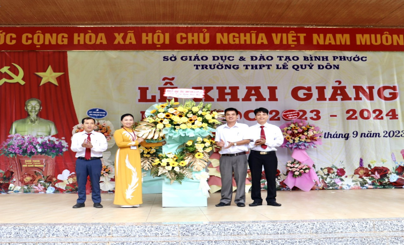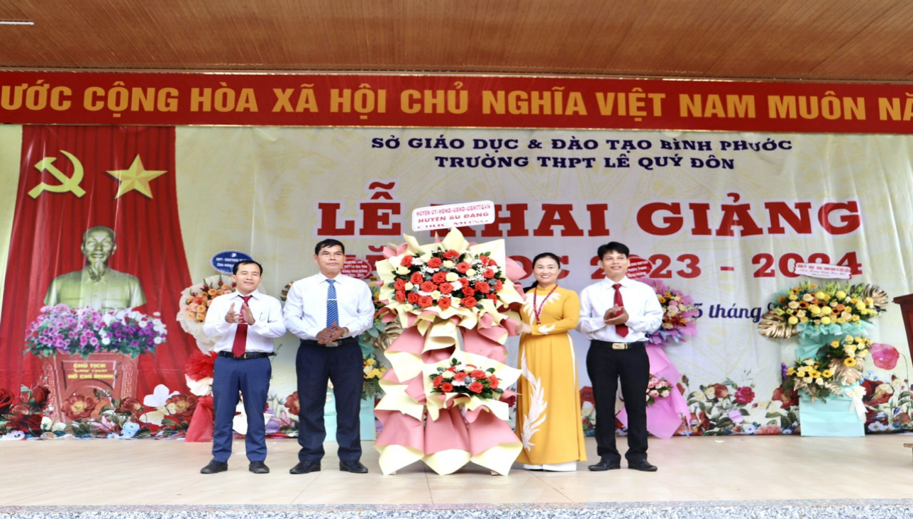 Cũng trong buổi lễ long trọng này, đại diện của lãnh đạo huyện Bù Đăng, đại diện UBND xã Nghĩa Trung, xã Nghĩa Bình, xã Đức Liễu, Hội cha mẹ học sinh, các doanh nghiệp đã có những lẵng hoa tươi thắm cùng những phần quà vô cùng ý nghĩa gửi đến nhà trường với niềm tin, niềm mong mỏi về sự thành công của con em trên con đường học vấn, sự phát triển đi lên của trường THPT Lê Quý Đôn.