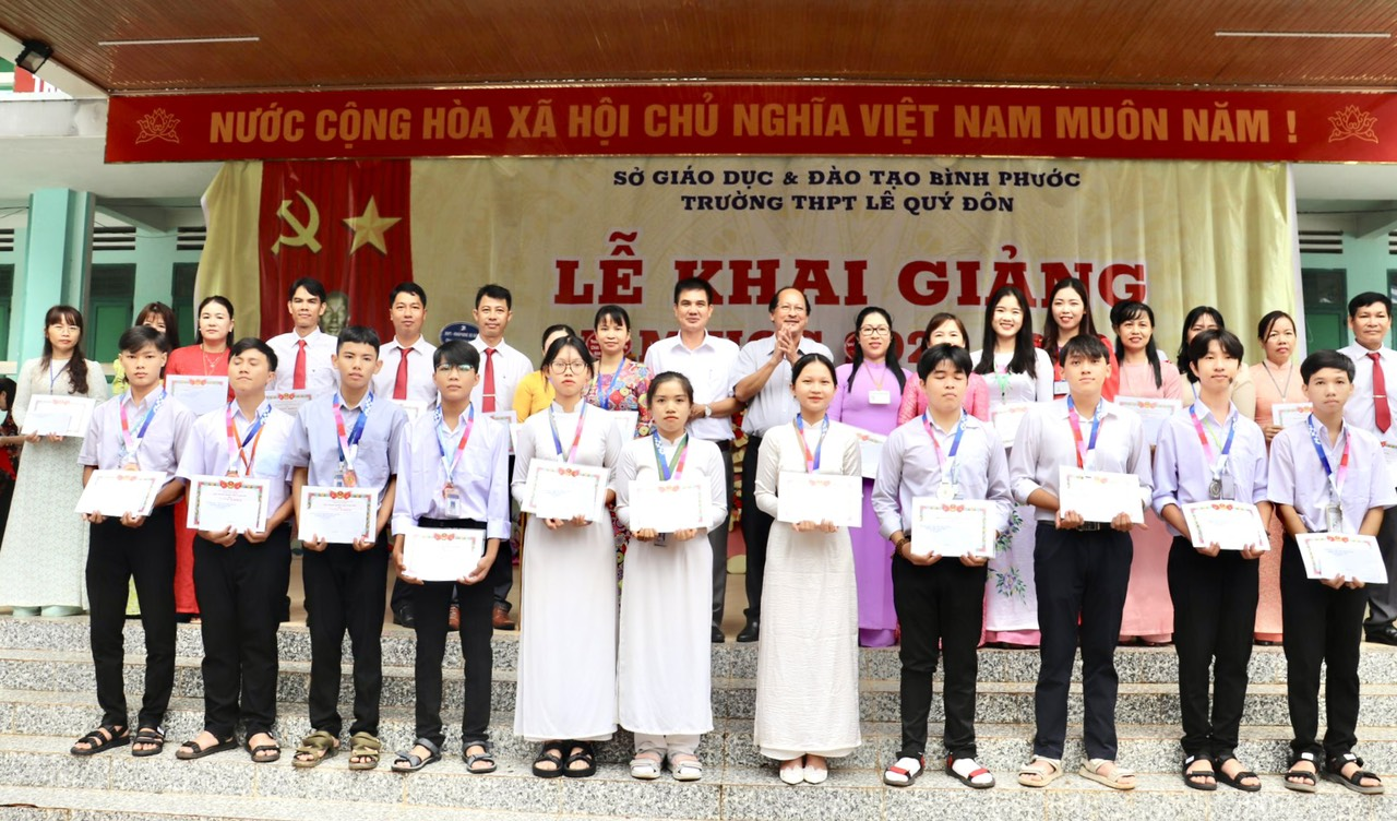 Trong năm học qua, thầy và trò trường THPT Lê quý Đôn đã thấm nhuần lời dạy của Bác Hồ kính yêu hăng hái thi đua Dạy tốt - Học tốt, vượt qua mọi khó khăn để hoàn thành tốt mục tiêu và nhiệm vụ năm học, đạt nhiều thành tích xuất sắc, được Thủ tướng Chính phủ tặng cờ thi đua và các cấp khen thưởng như bằng khen của Thủ tướng Chính phủ; Bằng khen của Chủ tịch UBND Tỉnh; Bằng khen của Giám đốc công an Tỉnh về phong trào toàn dân bảo vệ an ninh Tổ quốc; Giấy khen của Giám đốc Sở GD - ĐT Bình Phước… Một năm học mới - năm học 2023 - 2024 đã bắt đầu, với sự quan tâm của địa phương và các cấp, các ngành; sự ủng hộ của phụ huynh học sinh; sự nỗ lực của các em học sinh;