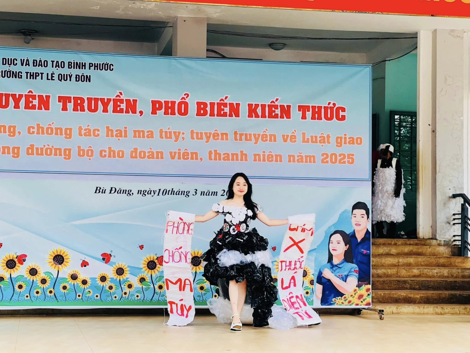 Cùng với hoạt động tuyên truyền BTC phối hợp cùng CĐGV, học sinh khối 10,11 trình diễn thời trang tái chế nhằm với chủ đề Nói không với Ma tuý sôi nổi và bổ ích tạo hứng khởi cho 1 tuần làm việc năng động và hiệu quả.