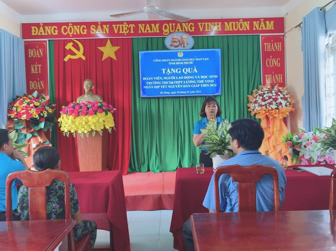 Tại Khối thi đua số 2, Công đoàn ngành Giáo dục đã tặng 22 phần quà cho đoàn viên và người lao động đối với 3 Công đoàn cơ sở (Trường THPT Lê Quý Đôn; Trường THCS và THPT Lương Thế Vinh; Trường THCS và THPT Đăng Hà) đồng thời tặng thêm các phần quà cho học sinh đạt nhiều thành tích trong học tập, để động viên các em cố gắng nhiều hơn nữa trong học kỳ II và các em thêm niềm vui đón Tết đầm ấm, hạnh phúc bên gia đình.