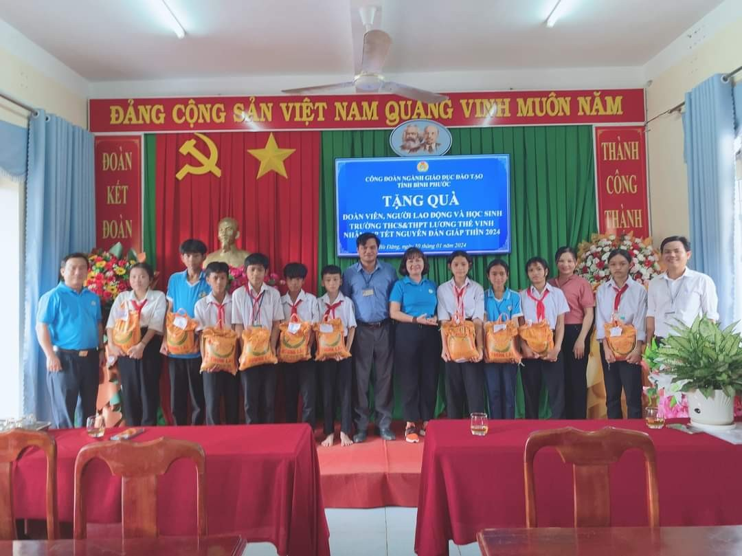 Nhân dịp Tết đến Xuân về, phát huy truyền thống đoàn kết, nhân ái, tạo không khí vui tươi, lành mạnh, đầm ấm, Ban Chấp hành Công đoàn Giáo dục đã vận động các mạnh thường quân hỗ trợ 100 phần quà, trị giá mỗi phần quà là 500.000 đồng để tặng đoàn viên và người lao động; đồng thời thể hiện sự quan tâm của Công đoàn ngành Giáo dục chăm lo cho công đoàn viên, người lao động có thêm niềm vui đón Tết Nguyên đán đầm ấm, hạnh phúc với phương châm: “Người người đều có Tết – Nhà nhà đều có Tết”.