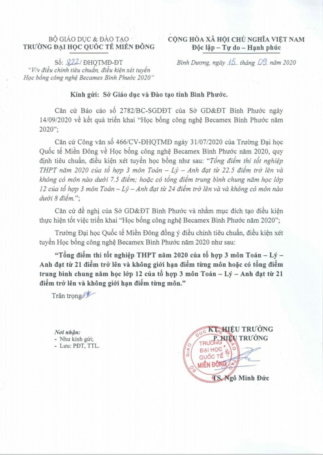 Điều chỉnh học bổng Công nghệ Becamex Bình Phước