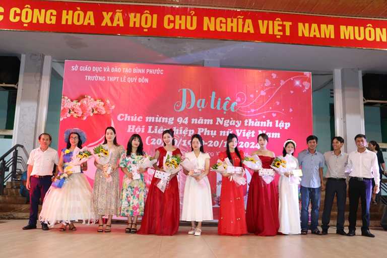 Nhân kỷ niệm 94 năm Ngày thành lập Hội Liên hiệp Phụ nữ Việt Nam (20/10/1930 – 20/10/2024). Nhà trường và Công đoàn Trường THPT Lê Quý Đôn đã phối hợp tổ chức các hoạt động chào mừng. Tại buổi dạ tiệc tối 19/10 Nhà trường rất vinh dự được đón tiếp đồng chí Nguyễn Thị Thái, Phó Chủ tịch Công đoàn ngành Giáo dục và Đào tạo tỉnh về dự và động viên đối với cán bộ giáo viên và nhân viên.