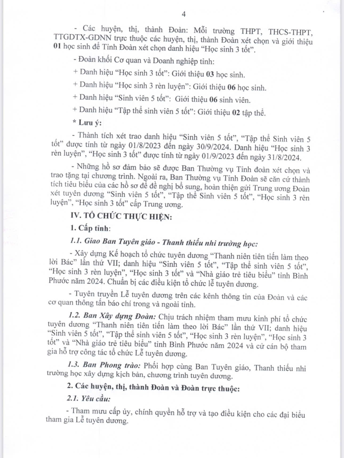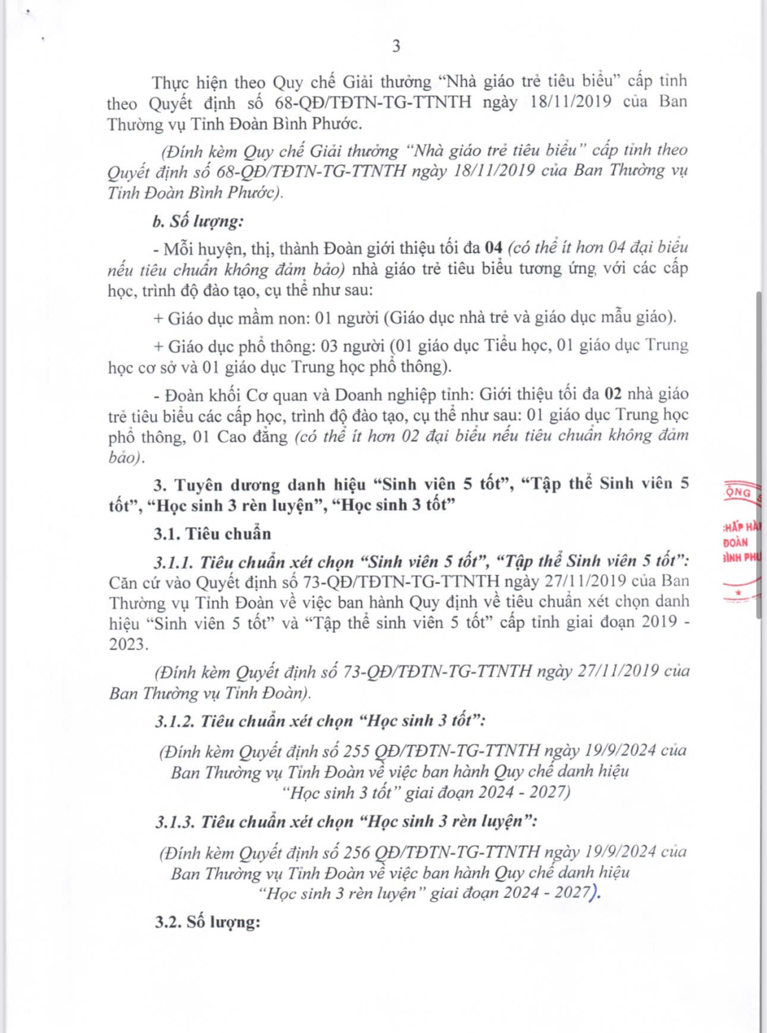 Triển khai các văn bản liên quan đến Tuyên dương "Học sinh 3 tốt", "Thanh niên tiên tiến làm theo lời Bác", "Nhà giáo tẻ tiêu biểu" cấp Tỉnh năm 2024-2025