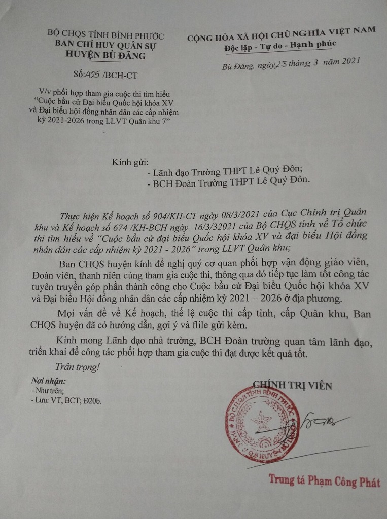 công văn V/v phối hợp tham gia cuộc thi tìm hiểu" Cuộc bầu cử Đại biểu Quốc hội"