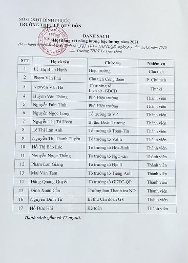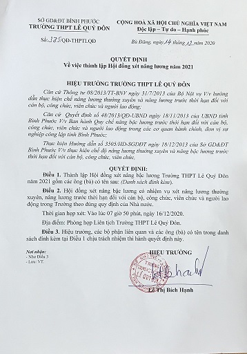 375/QĐ-THPTLQĐ V/v thành lập Hội đồng xét nâng lương