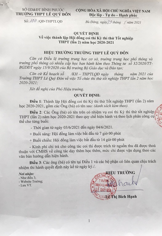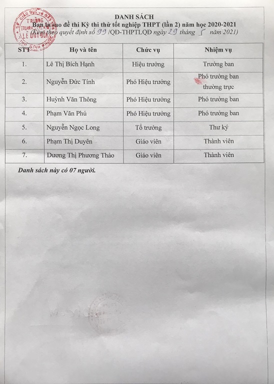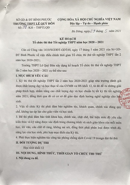 Các quyết định về công tác chuẩn bị thi, in sao đề thi, coi thi, làm phách và chấm thi kỳ thi thử tốt nghiệp THPT lần 2
