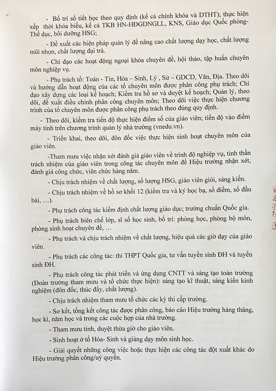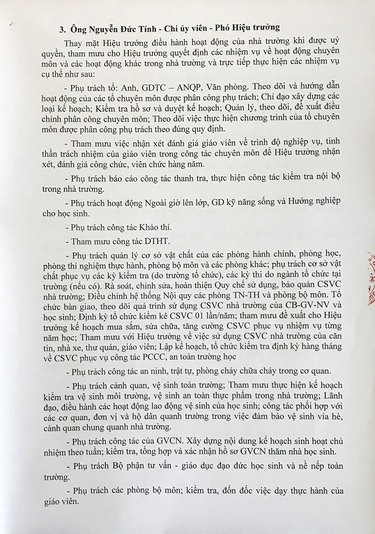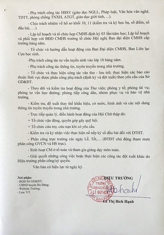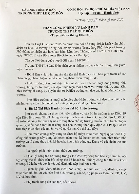 Phân công nhiệm vụ lãnh đạo trường THPT Lê Quý Đôn