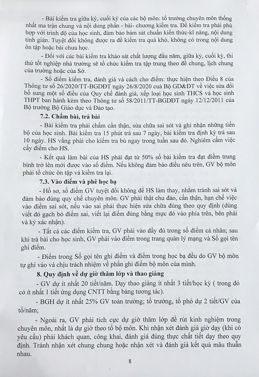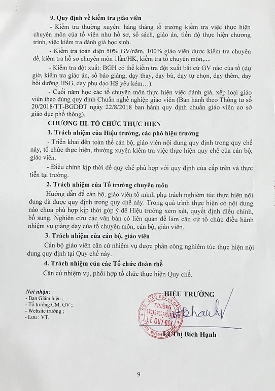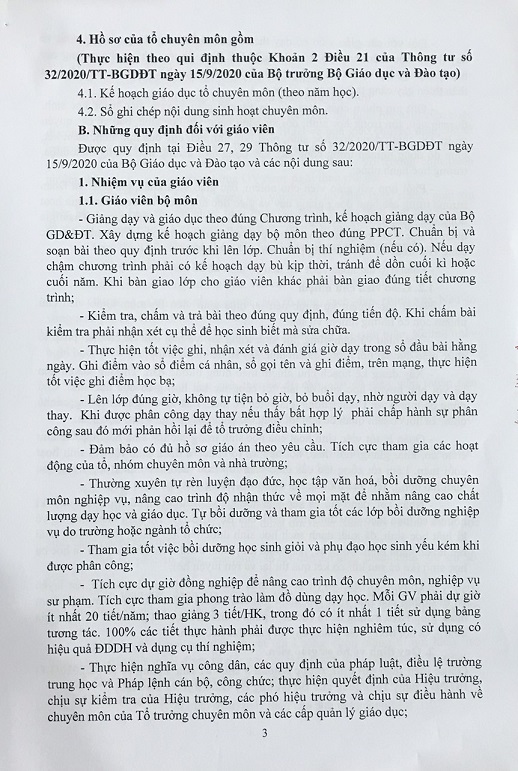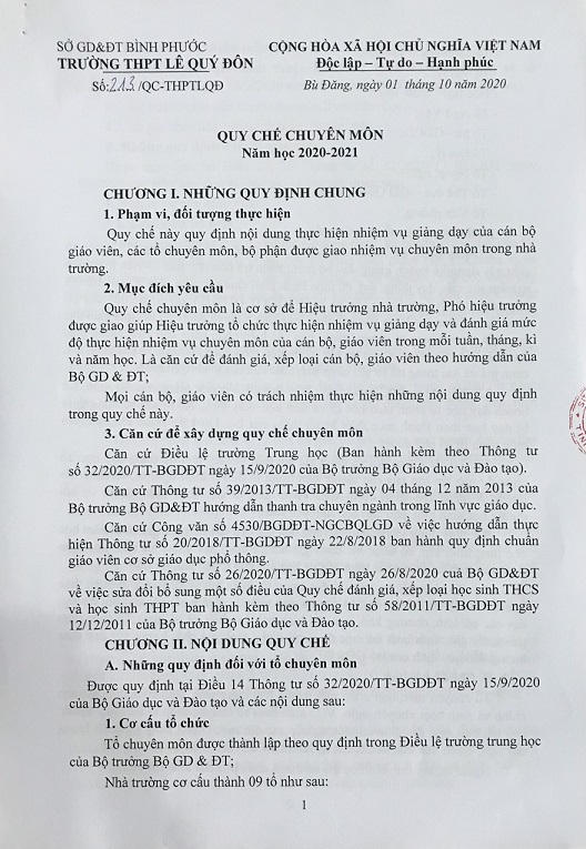 Số 213/QC-THPTLQĐ Quy chế chuyên môn năm học 2020-2021