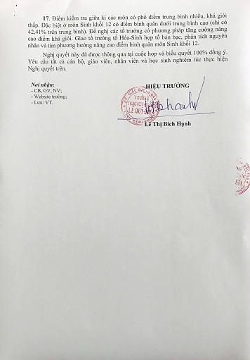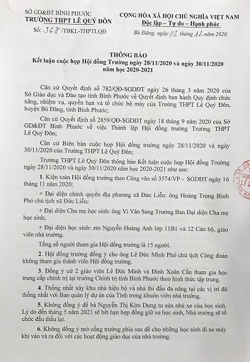 Số 376TBKT-THPTLQĐ V/v Thông báo kết luận cuộc họp hội đồng trường THPT Lê Quý Đôn