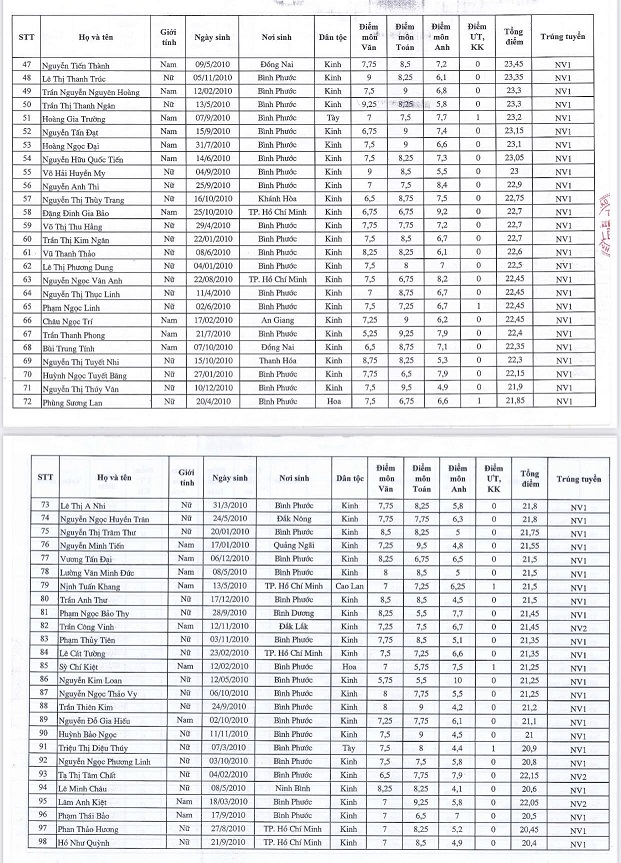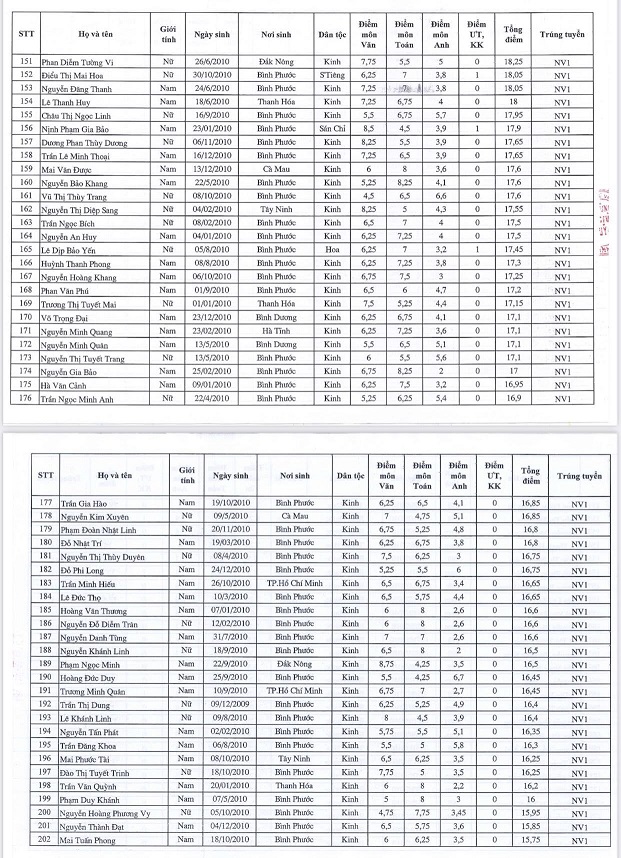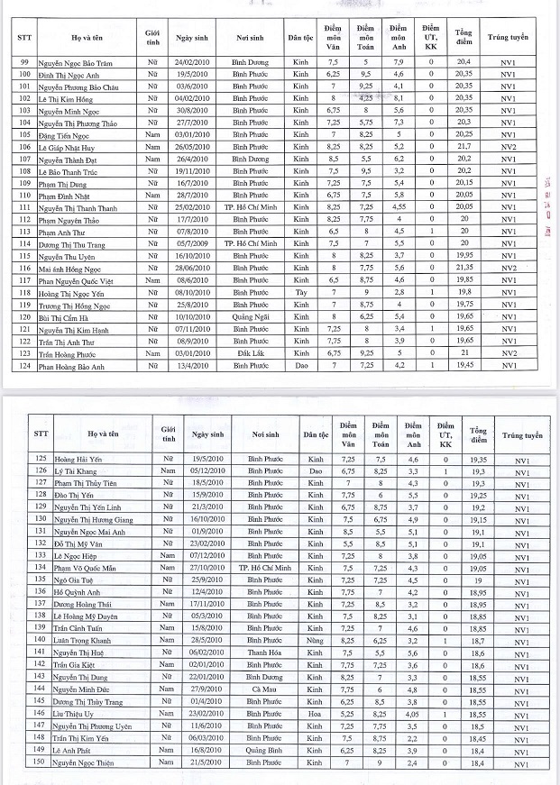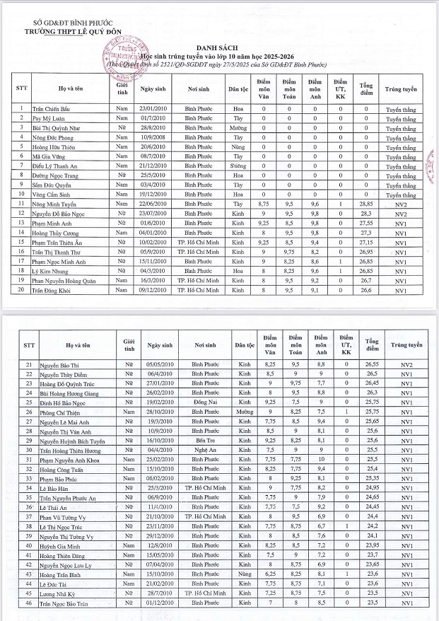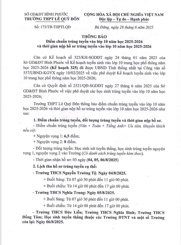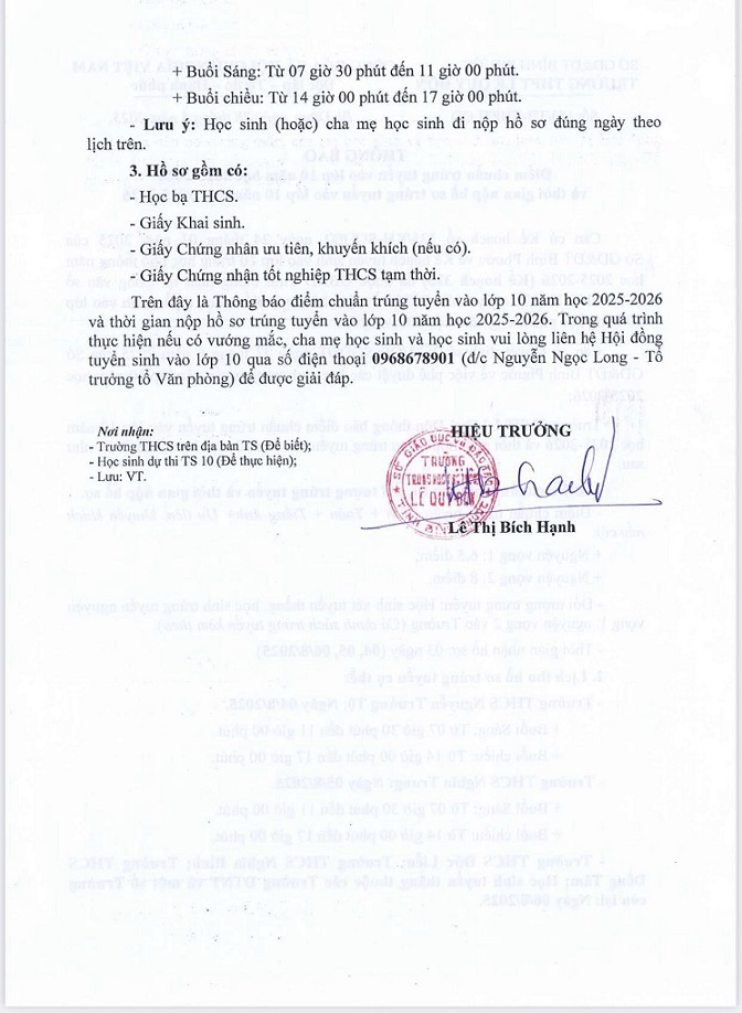 THÔNG BÁO ĐIỂM CHUẨN TRÚNG TUYỂN VÀO LỚP 10 VÀ THỜI GIAN NỘP HỒ SƠ TRÚNG TUYỂN VÀO LỚP 10 NĂM HỌC 2025-2026