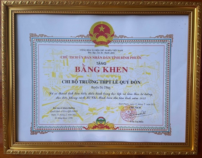 Nhiều năm liền nhà trường được Sở GD-ĐT, UBND tỉnh Bình Phước, Bộ Công an, Trung ương Hội chữ thập đỏ Việt Nam, Liên đoàn lao động tỉnh tặng giấy khen, bằng khen trong các lĩnh vực. Đặc biệt năm học 2021-2022 trường THPT Lê Quý Đôn được tặng thưởng Cờ Thi đua của Chính phủ.