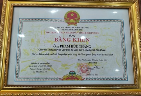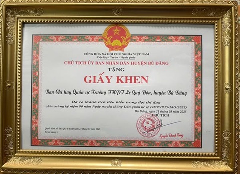 Dịp này, UBND huyện Bù Đăng khen thưởng 5 tập thể, 10 cá nhân đã có thành tích trong đợt thi đua chào mừng kỷ niệm 90 năm Ngày truyền thống DQTV, trong đó trường THPT Lê Quý Đôn có tập thể Ban chỉ huy quân sự trường và cá nhân đồng chí Phạm Hữu Thắng.